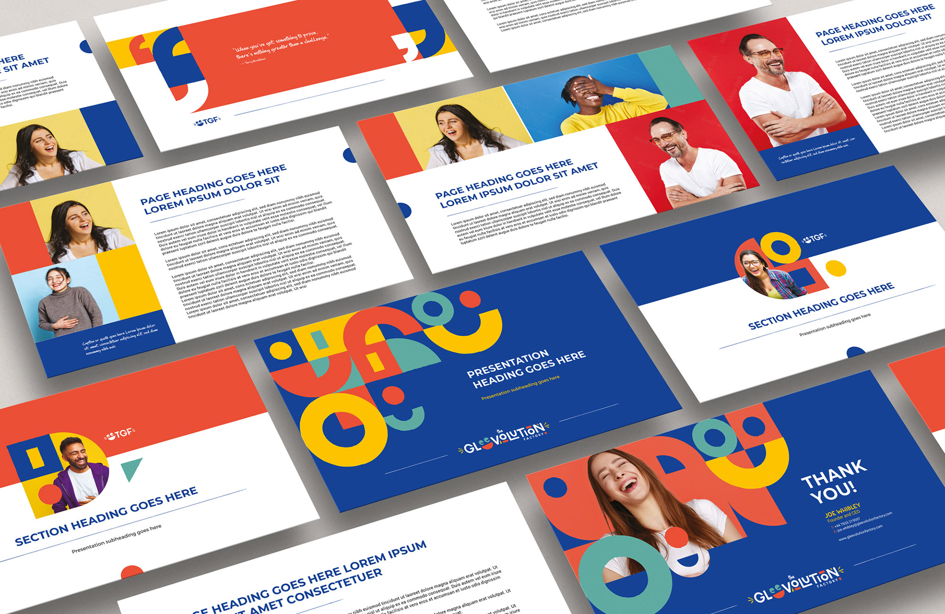 The Gleevolution Factory is a learning and development company that focuses on leadership, sales and customer service training sessions, by means of fun, engaging and practical learning methods. They required a logo and identity that evoked the spirit of their training methods as well as their goal of making people smile and laugh at work, and learn through fun.